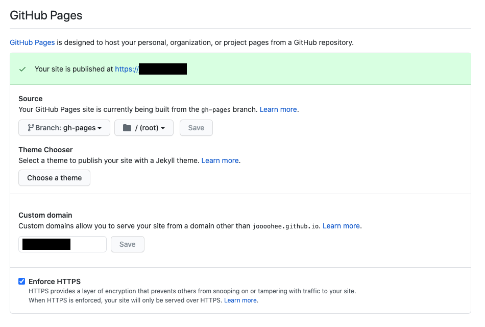 Repository setting으로 들어가면, gh pages에 대한 세부설정을 할 수 있다.