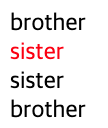 .brother ~ .sister { color: red; }brother 클래스와 형제인 sister 클래스가 선택된다.
