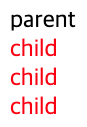 <html> <div class="parent">parent <div class="child">child</div> <div class="child">child</div> <div> <div class="child">child</div> <div> </div> </html>자손 결합자이므로 최상위 child 클래스만 선택되는게 아니라 child 클래스 3개가 다 선택된다.