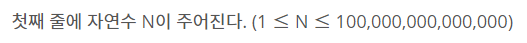 첫째 줄에 자연수 N이 주어진다. (1 ≤ N ≤ 100,000,000,000,000)